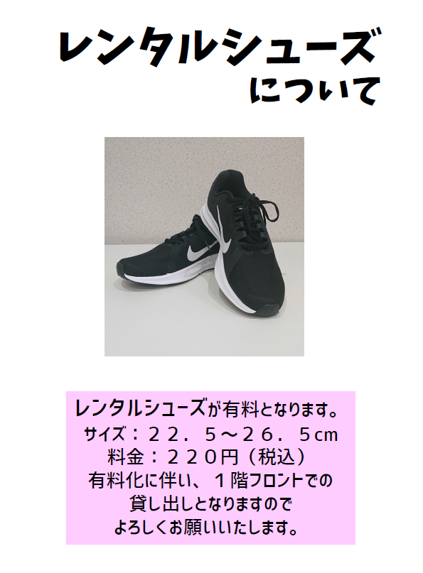 レンタルシューズ有料のお知らせ
